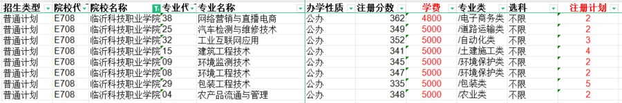 2023年山東省注冊入學計劃已經公布,公辦學校16所,民辦學校29所,公辦計劃數1852,民辦計劃數6127,藝術類計劃324,體育類計劃44,春季高考計劃數3333。 一、學校簡介 臨沂科技職業學院是經山東省人民政府批準、教育部備案的公辦全日制專科層次普通高等學校。學院位于臨沂市沂河新區,是“全國鄉村振興人才培養優質校”“山東省鄉村振興示范性職業院校”和“山東省專業技術兵員儲備基地”。學院占地1218畝,建筑面積34.1萬平方米,建設標準化考場、數字化教室160個,校內實驗實訓室126個,儀器設備總價值1.3億元。 二、臨沂科技職業學院2023年注冊入學計劃及錄取分數線