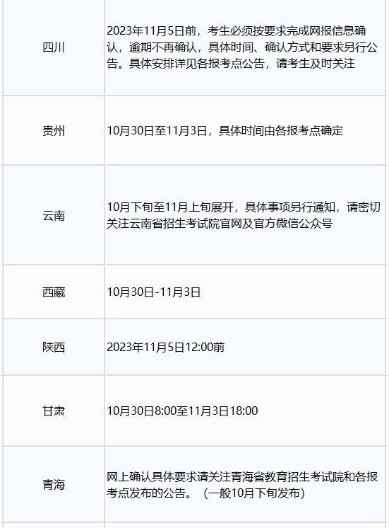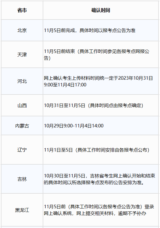 2024年研究生考試報名已于昨日結(jié)束,接下來完成報名的考生要進行網(wǎng)上確認(rèn)工作。根據(jù)管理規(guī)定要求,所有考生均應(yīng)當(dāng)對本人網(wǎng)上報名信息進行認(rèn)真核對并確認(rèn)。考生應(yīng)當(dāng)按報考點規(guī)定配合采集本人圖像等相關(guān)電子信息。 考生要密切關(guān)注省級教育招生考試機構(gòu)、招生單位和報考點發(fā)布的公告,牢記網(wǎng)上確認(rèn)的時間,在規(guī)定的時間內(nèi)參與網(wǎng)上確認(rèn)。網(wǎng)上確認(rèn)時間是什么時候?流程是什么樣的?一起來看一下吧~ 各省市網(wǎng)上確認(rèn)時間安排