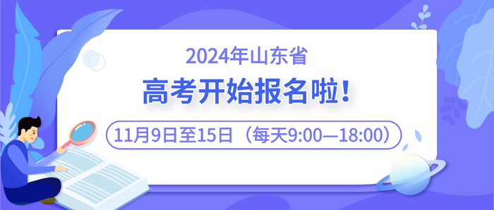 2024年山東高考報名時間為2023年11月9日至15日(每天9:00—18:00),資格審核時間為2023年11月16日至30日,確認(rèn)繳費(fèi)時間為2023年12月1日至5日(每天9:00—18:00)。