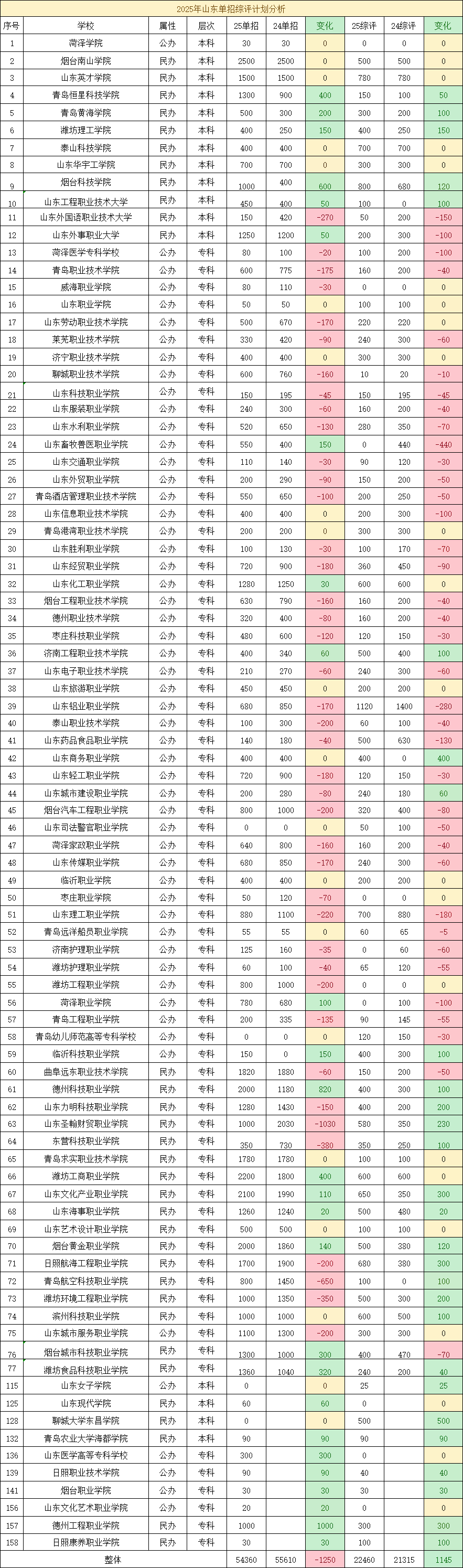 2025年山東高考單招綜評院校專業計劃發表時間:2025-01-07 11:44 20225年山東高考單招綜評的招生計劃,在2025年1月6號發布 大家一定要注意,2025年山東單招綜評的報名時間是2月18號到2月21號, 山東省的單招綜評報名的地方是山東省教育招生考試院,不在單招綜評的學校報名,大家一定要注意!!! 關于山東單招綜評的考試內容 山東單獨招生,采取“文化素質+專業技能”的考試方式(退役士兵考生除外)。總分為430分,專業技能測試成績230分,文化素質考試成績200分,均以原始成績計入總分。 1.文化素質考試。文化素質考試時間為2025年3月1日—3日,具體考試方式和時間由各高校自主確定。 高校要成立由學校領導任組長、有關職能處室(單位)負責人參加的考試招生工作領導小組,負責本校考試工作的統籌領導和組織管理。 要制定具體實施辦法及有關規章制度,嚴慎細實做好各方面工作。 高校要加強命題工作統一管理,不得將管理權限層層下放或簡單委托院系承擔,不得委托任何中介機構或公司命題。 要嚴格命題人員選派,聘請政治素質好、學術水平高的專家命題,安排專人對試題進行審核,嚴防命題錯誤。 要加強題庫建設,切實考察考生理論及專業知識基礎。 2.專業技能測試。專業技能測試工作原則上由省教育招生考試院統一組織,可根據需要采用筆試、實際操作,或筆試與實際操作相結合的方式進行。 考生參加由省教育招生考試院組織的春季高考統一考試招生專業技能測試,測試成績由招生院校認可,按考生實際得分計入總分。 春季高考技能測試時間及具體要求由省教育招生考試院另文下達。 技能測試成績由技能測試主考院校統一公布,并由省教育招生考試院將考生專業技能測試成績提供給各單招高校。 經我廳批準學校自主組織專業技能測試的,考試方式、分值等參照全省統一技能測試方案執行。 3.參加單獨招生的退役士兵考生不參加文化素質考試與專業技能測試,由招生院校組織素質測試或面試。 素質測試或面試時間為2025年3月1日—3日,具體測試方式和時間由各高校自主確定。 (二)綜合評價招生。采取“綜合素質評價+素質測試或面試”的方式進行。 1.認真組織考生高中階段綜合素質評價。 開展綜合評價招生的高校要在2025年2月28日前登錄山東省教育招生考試數據報送管理平臺(https://ygpt.sdzk.cn) 下載報考本校考生的高中綜合素質評價信息(含學業水平合格考試成績),并依據有關信息對學生進行綜合素質評價。 2.規范進行考生素質測試或面試。 招生高校要根據國家教育考試工作要求確定本校素質測試或面試的內容、標準、形式與辦法,重點考核考生的綜合能力與職業潛質。 素質測試或面試時間為3月1日—3日,具體測試方式和時間由各高校自主確定。 2025年山東單招綜評的錄取 (一)招生高校要嚴格執行經我廳核準并公布的招生章程,參加單獨招生的考生(退役士兵考生除外)由招生高校依據綜合成績由高到低分專業擇優錄取, 考生綜合成績由文化素質考試與專業技能測試原始成績相加構成。 參加綜合評價招生的考生由招生高校依據綜合成績由高到低分專業擇優錄取,綜合成績由考生高中階段綜合素質評價成績與素質測試或面試成績構成。 參加單獨招生的退役士兵考生由招生高校依據素質測試或面試成績由高到低分專業擇優錄取。 為保障生源質量,各招生高校可根據生源情況自主劃定文化或技能最低錄取控制線。需劃定最低錄取控制線的高校,應在招生章程中提前向社會公布。 擬錄取名單在錄取高校網站進行公示后,應于2025年4月8日前報省教育招生考試院(錄取工作由省教育招生考試院另文安排)。 凡被單獨招生或綜合評價招生錄取的考生,不再參加后續的春季、夏季普通高校招生統一考試(包括體育專業測試)及錄取,招生高校要通過招生簡章等途徑明確告知考生。 高校要認真核對擬錄取名單數據信息,確保報送數據準確無誤,出現錯報漏報等情況將嚴肅追責。 (二)新生資格復查。新生入校后,所有考生均須參加由學校組織的身體健康狀況檢查和入學資格復查, 如發現偽造材料取得報考資格者、冒名頂替者或體檢舞弊及其他舞弊者,按照有關規定予以清退。