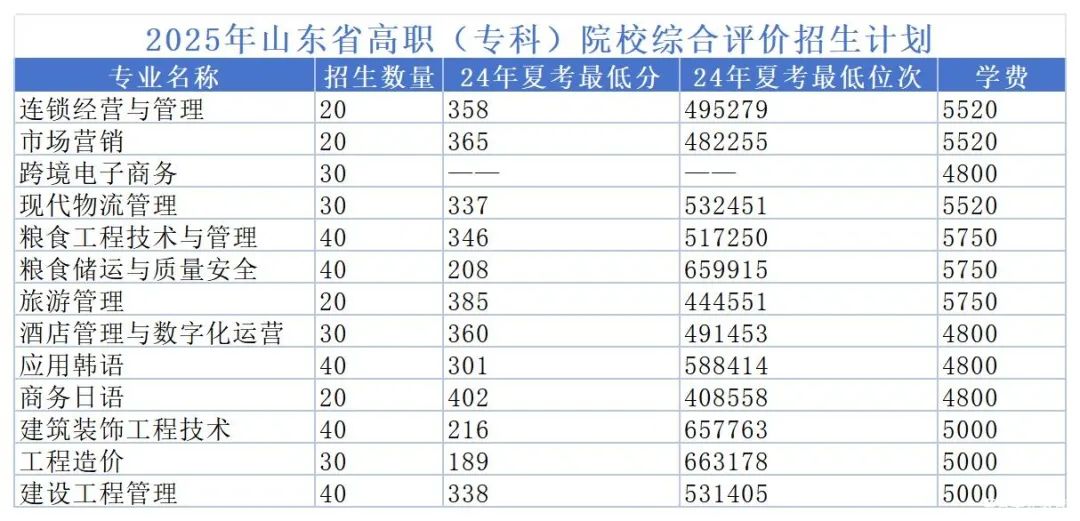 山東商務職業學院2025年高職(??疲﹩为毧荚囌猩途C合評價招生計劃