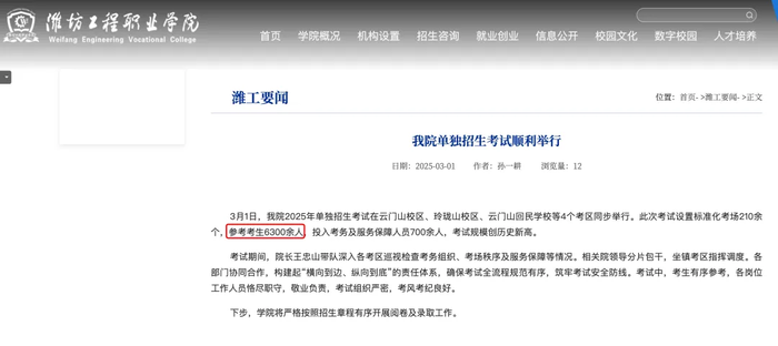 濰坊工程職業學院2025年單招綜評參考考生有6300余人