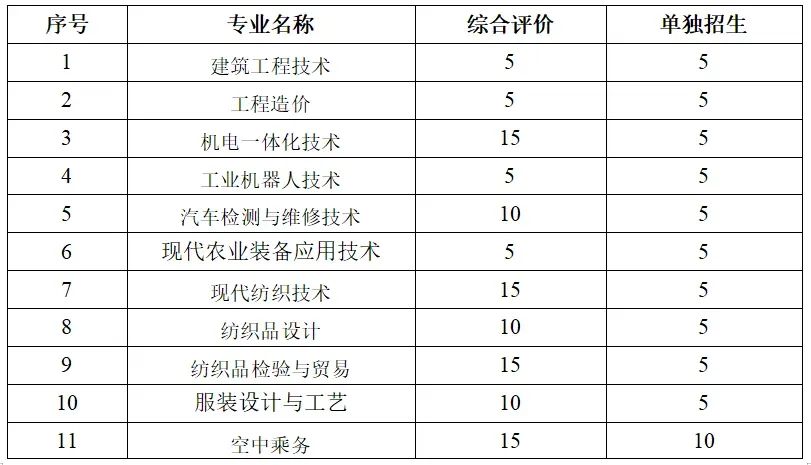 塔里木職業(yè)技術(shù)學(xué)院2025年山東高職(專科)單獨考試招生和綜合評價招生計劃、考試內(nèi)容發(fā)表時間:2025-03-24 14:22 1 塔里木職業(yè)技術(shù)學(xué)院于2020年成立,占地面積1069畝,總建筑面積27.8萬平方米,校內(nèi)實習(xí)實訓(xùn)基地建筑面積6.7萬平方米。在編教職工334人,在校生8511人。學(xué)院開設(shè)有智能工程學(xué)院、經(jīng)濟管理學(xué)院、紡織服裝學(xué)院、通航產(chǎn)業(yè)學(xué)院、教育健康學(xué)院、馬克思主義學(xué)院6個二級分院和1個基礎(chǔ)教學(xué)部。開設(shè)機電一體化技術(shù)、汽車檢測與維修技術(shù)、現(xiàn)代紡織技術(shù)、電子商務(wù)、學(xué)前教育等30個專業(yè),獲國家級獎項23項,國家金獎1項,師市級及以上獎項211項。立項國家、省部級課題17項,省級以上名師工作室2個。擁有教育部供需對接就業(yè)育人項目2個,是全國高技能人才培養(yǎng)基地,兵團虛擬仿真實訓(xùn)基地。 ![]() ![]() 2 單獨招生對象:山東省中等職業(yè)學(xué)校應(yīng)屆畢業(yè)生; 綜合評價招生:對象為山東省普通高中應(yīng)屆畢業(yè)生。 3 報名時間:2025年3月24日10時至4月4日19時登錄塔里木職業(yè)技術(shù)學(xué)院官網(wǎng) (https://www.tarp.edu.cn),進入招生就業(yè)網(wǎng)站進行網(wǎng)上志愿填報。 打印準考證時間:2025年4月11日—4月12日 錄取查詢:考生可登錄塔里木職業(yè)技術(shù)學(xué)院招生信息網(wǎng)(網(wǎng)址:http://10.30.0.65:8004/home.html)進入招生就業(yè)頁面查詢擬錄取結(jié)果。 4 塔里木職業(yè)技術(shù)學(xué)院 塔里木職業(yè)技術(shù)學(xué)院招生計劃共計350人,其中單獨招生計劃130人,綜合評價招生計劃220人,以下為分專業(yè)招生計劃: ![]() ![]() 1.被錄取的山東考生,自愿原則簽訂兵團就業(yè)協(xié)議,簽訂協(xié)議的畢業(yè)生畢業(yè)后留新疆生產(chǎn)建設(shè)兵團工作1年可享受以下政策:生活補助三年合計6000元;學(xué)費補助三年合計9900元;教材費和交通補助三年合計3500元。 2.根據(jù)國家、地方的相關(guān)政策,并結(jié)合學(xué)院實際,學(xué)校建立了完善的獎、貸、助體系。設(shè)有國家獎學(xué)金、國家勵志獎學(xué)金。 5 (一)考試內(nèi)容 1.單獨招生 采取“文化素質(zhì)+專業(yè)技能”的考試方式,總分為430分。其中,文化素質(zhì)考試為200分,專業(yè)技能測試為230分。
