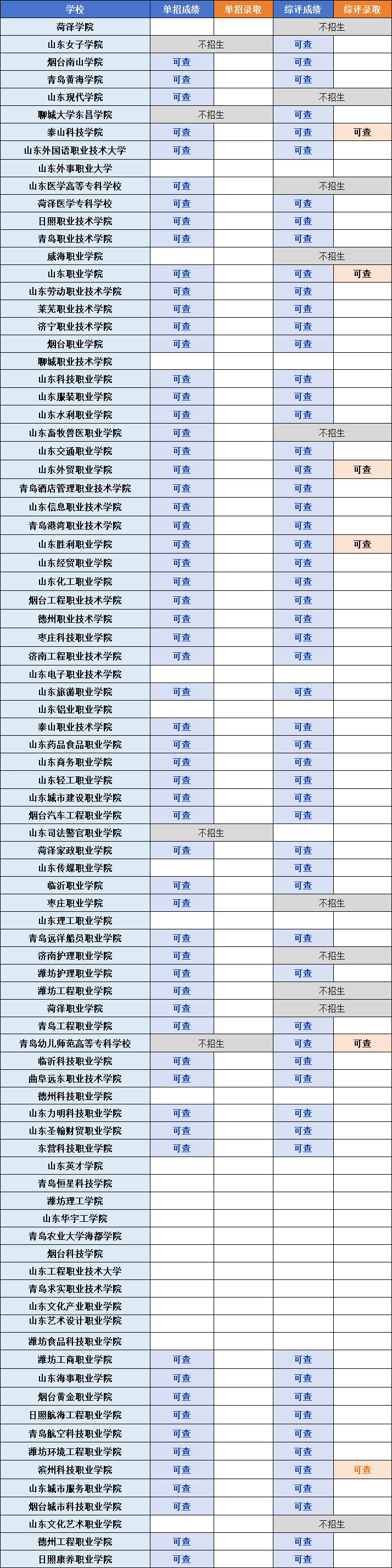2025年山東單招、綜評成績查詢進度及錄取結果進程表